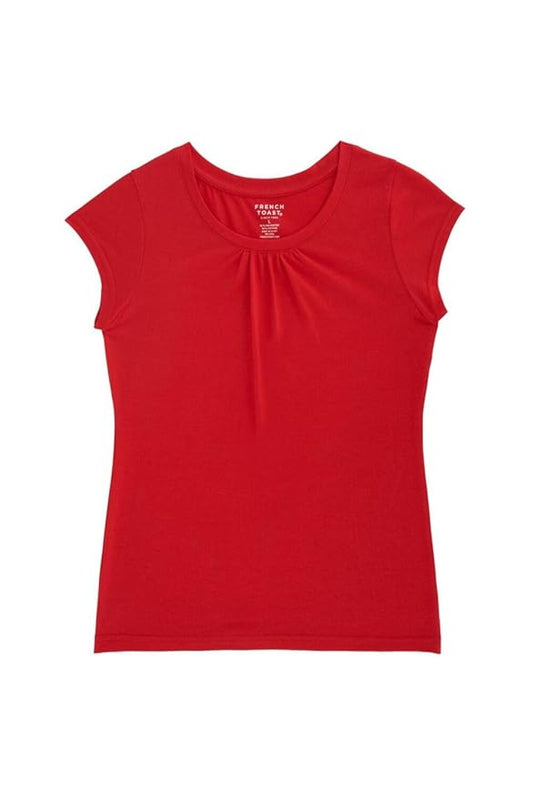 French Toast Girls' Short Sleeve Crew Neck Tshirt with Pleat