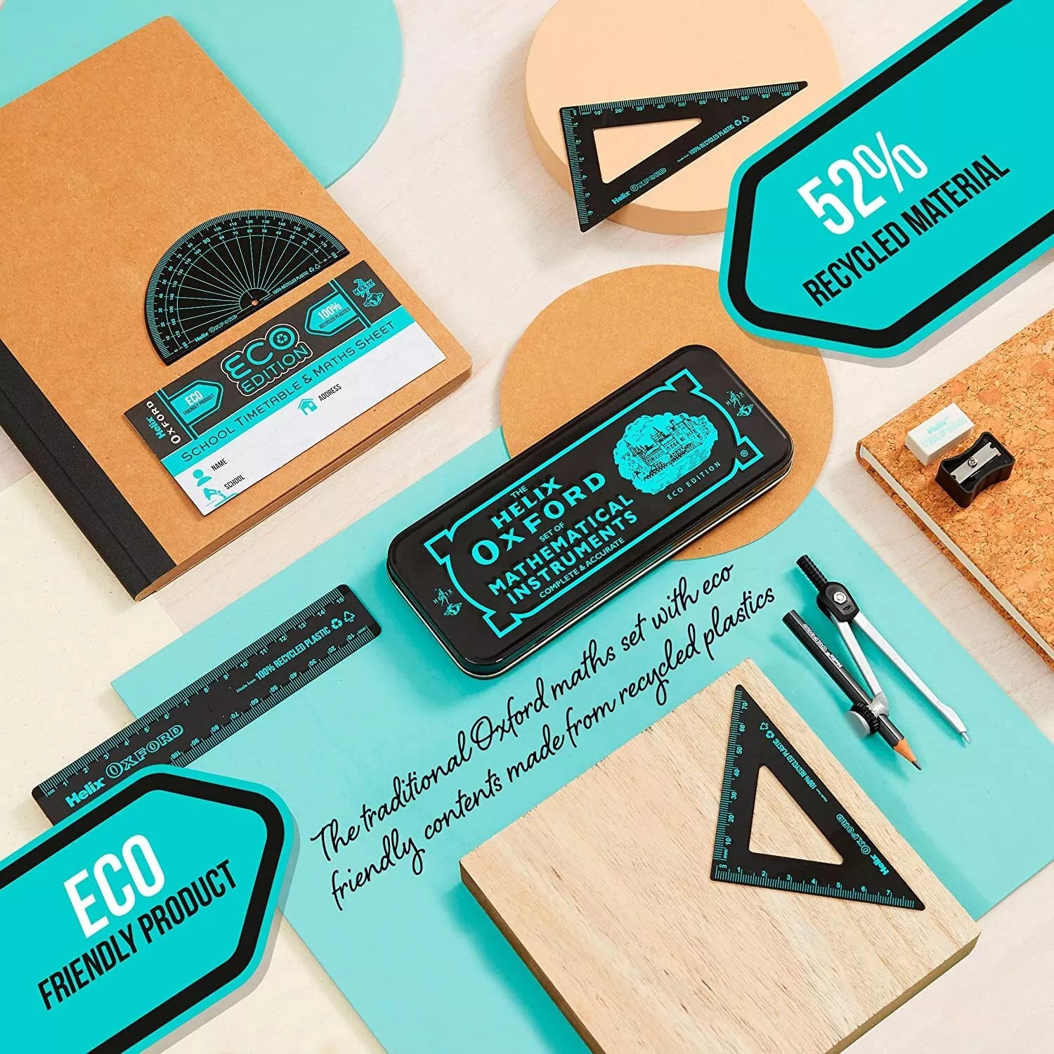 - Contains: 1 x compass, 1 x divider, 1 x pencil, 1 x ruler, 1 x protractor, 2 x set squares, , 1 x eraser, 1 x sharpener