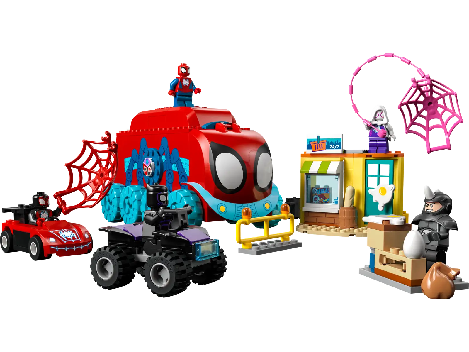 - Kids join Spidey, Miles Morales, Ghost-Spider, Black Panther and Rhino for web-slinging, egg-flinging adventures.
