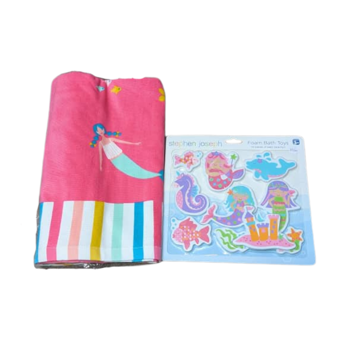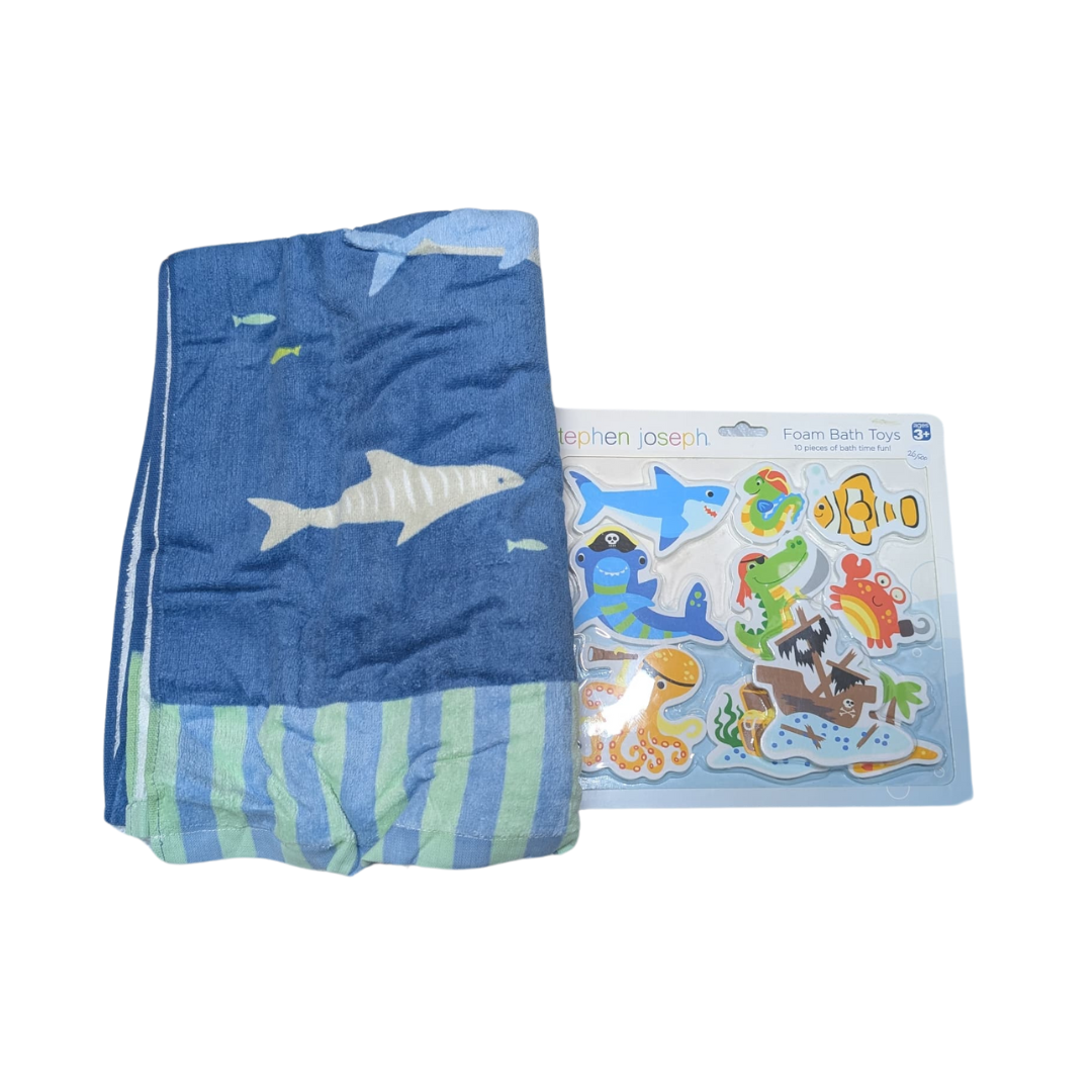 Gift Box contains Stephen Joseph towel and Foam bath toys
