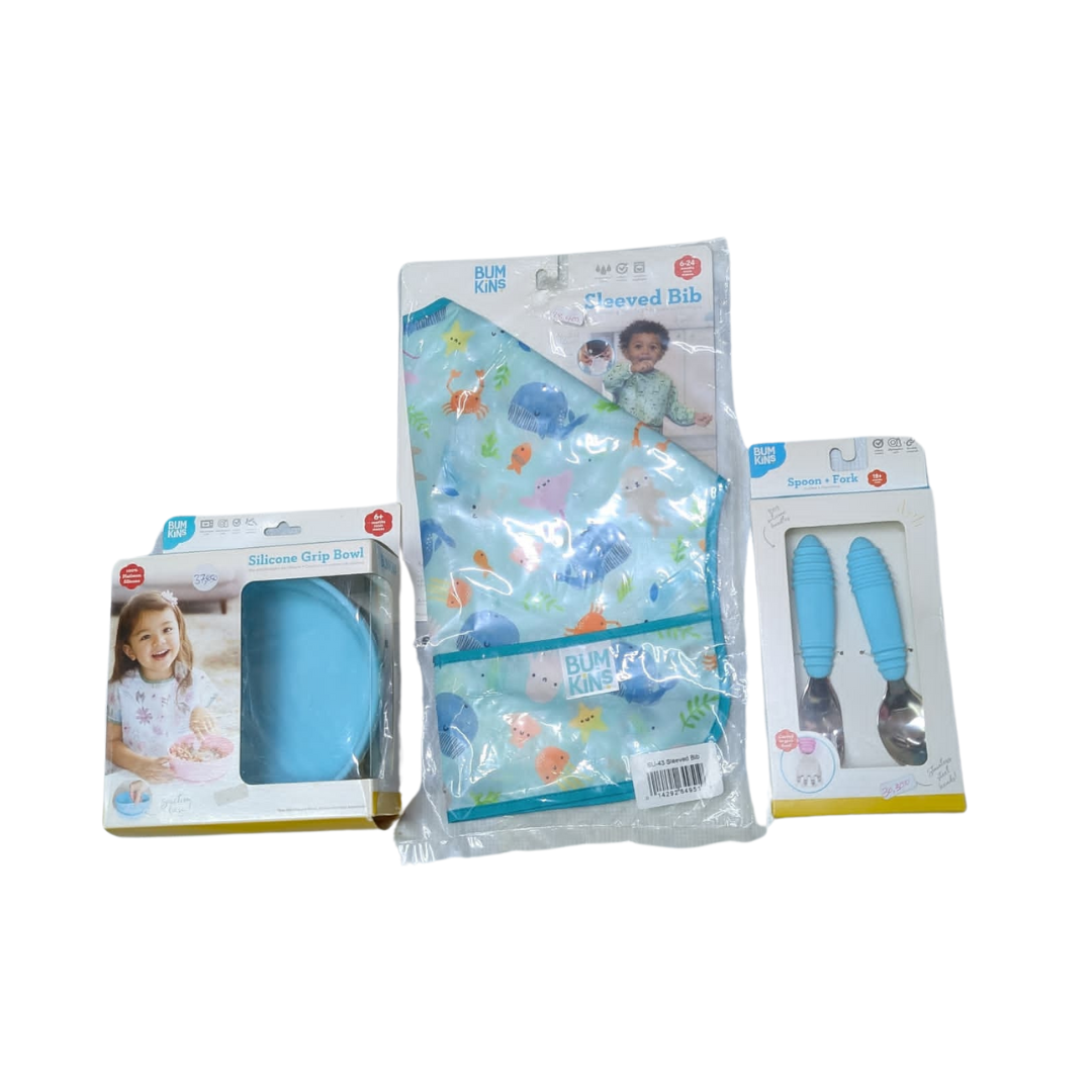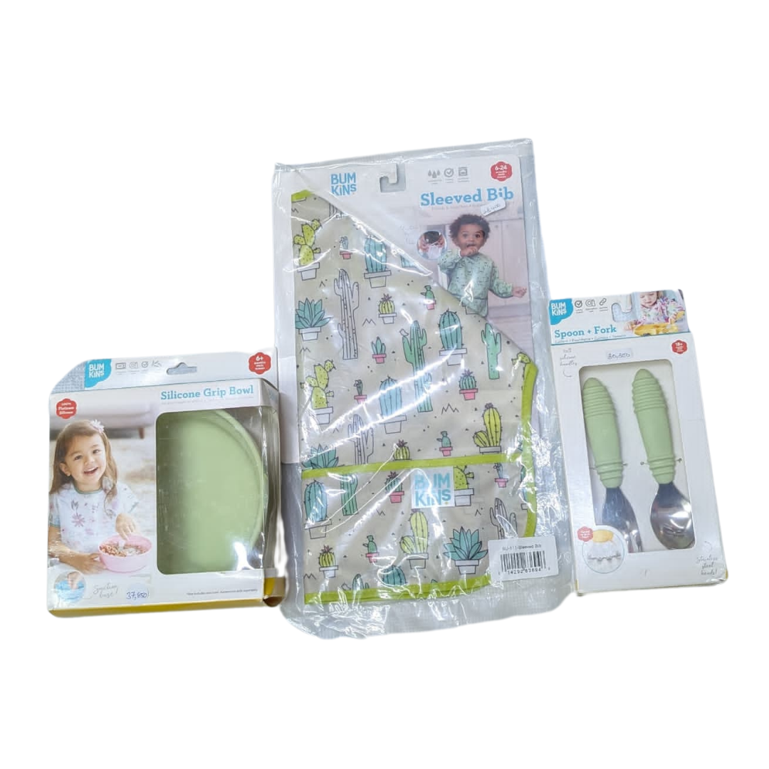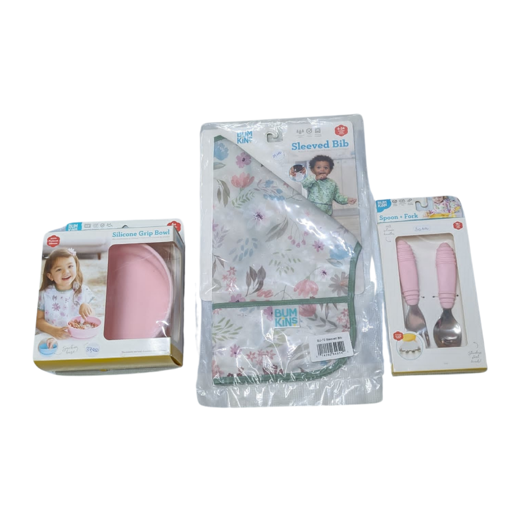 Gift Box contains Sleeved bib, Silicone grip bowl, Fork and Spoon set