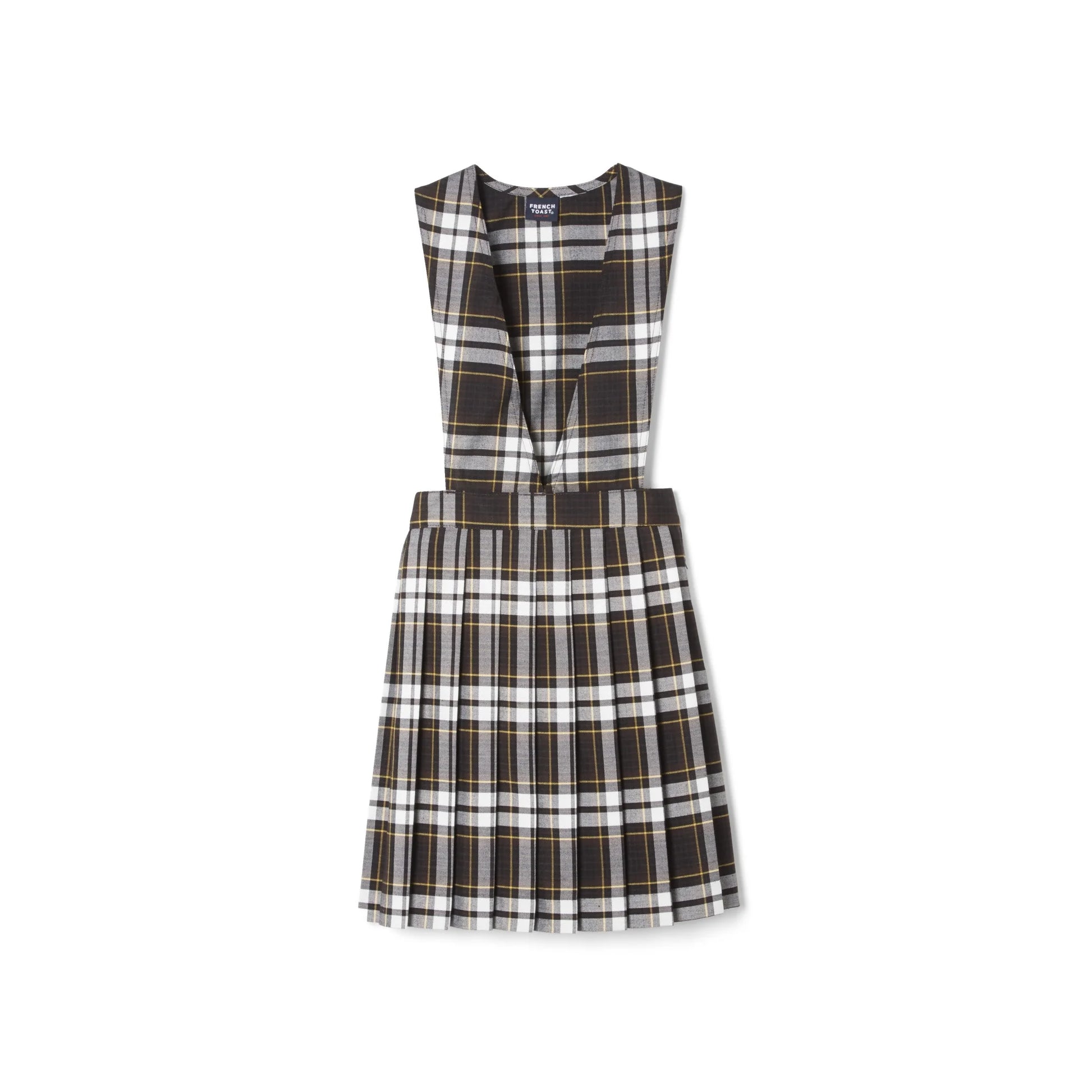 Crisp. Polished. Ready for whatever the day brings. This plaid jumper steps out with a permanent pleated skirt (no iron required) and back elastic waist (for comfier sitting, standing, running and jumping).
